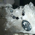 - Created with Larvikite and Crystal Quartz beads along with lotus flower silver pewter accents. The feature stone is a shimmery piece of Larvikite. This necklace has a toggle closure for ease, and is approximately 19 inches in length.