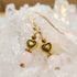 - Created with 8 mm Rose Quartz beads, gold plated Hematite and gold pewter hearts, along with gold-filled French hooks.